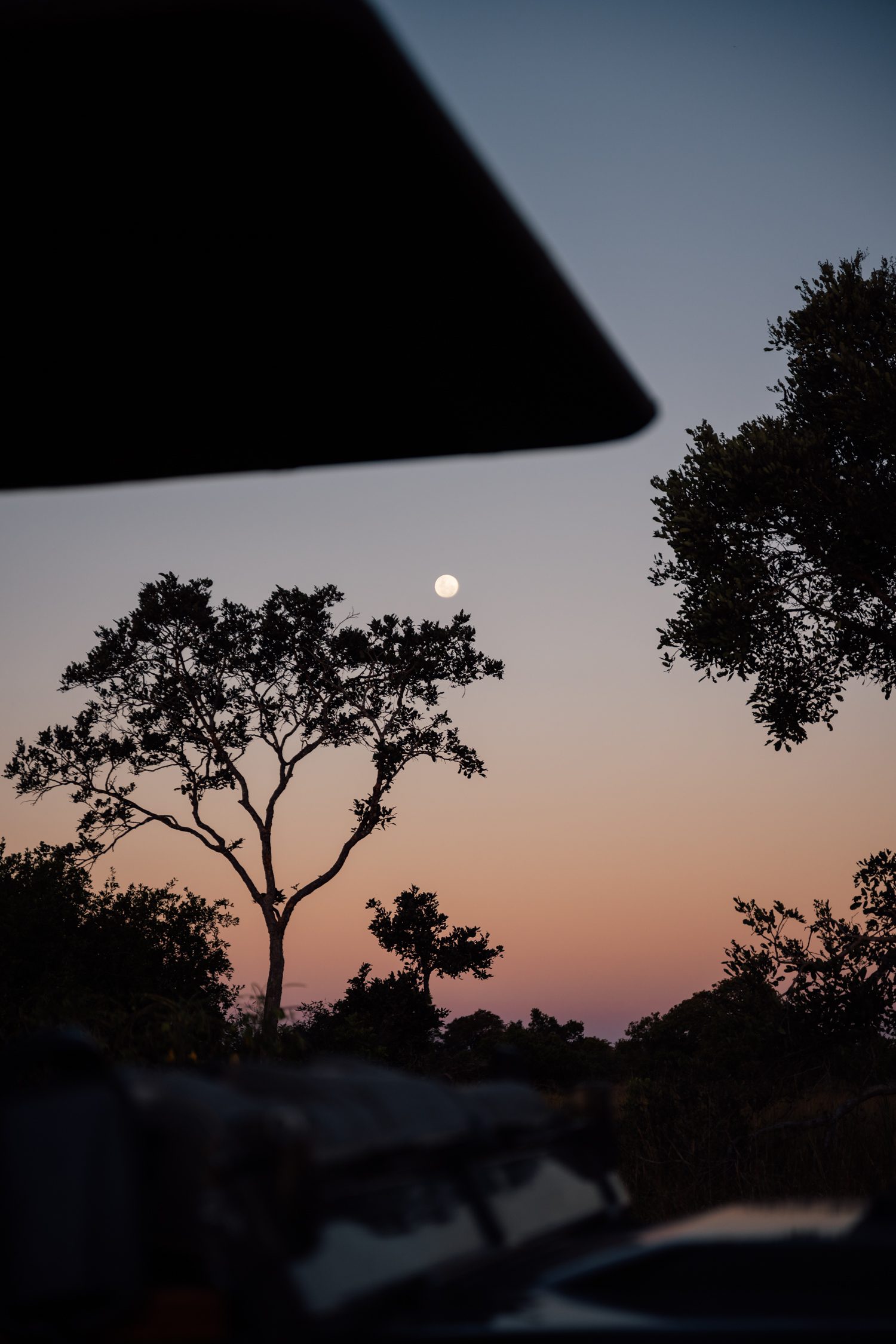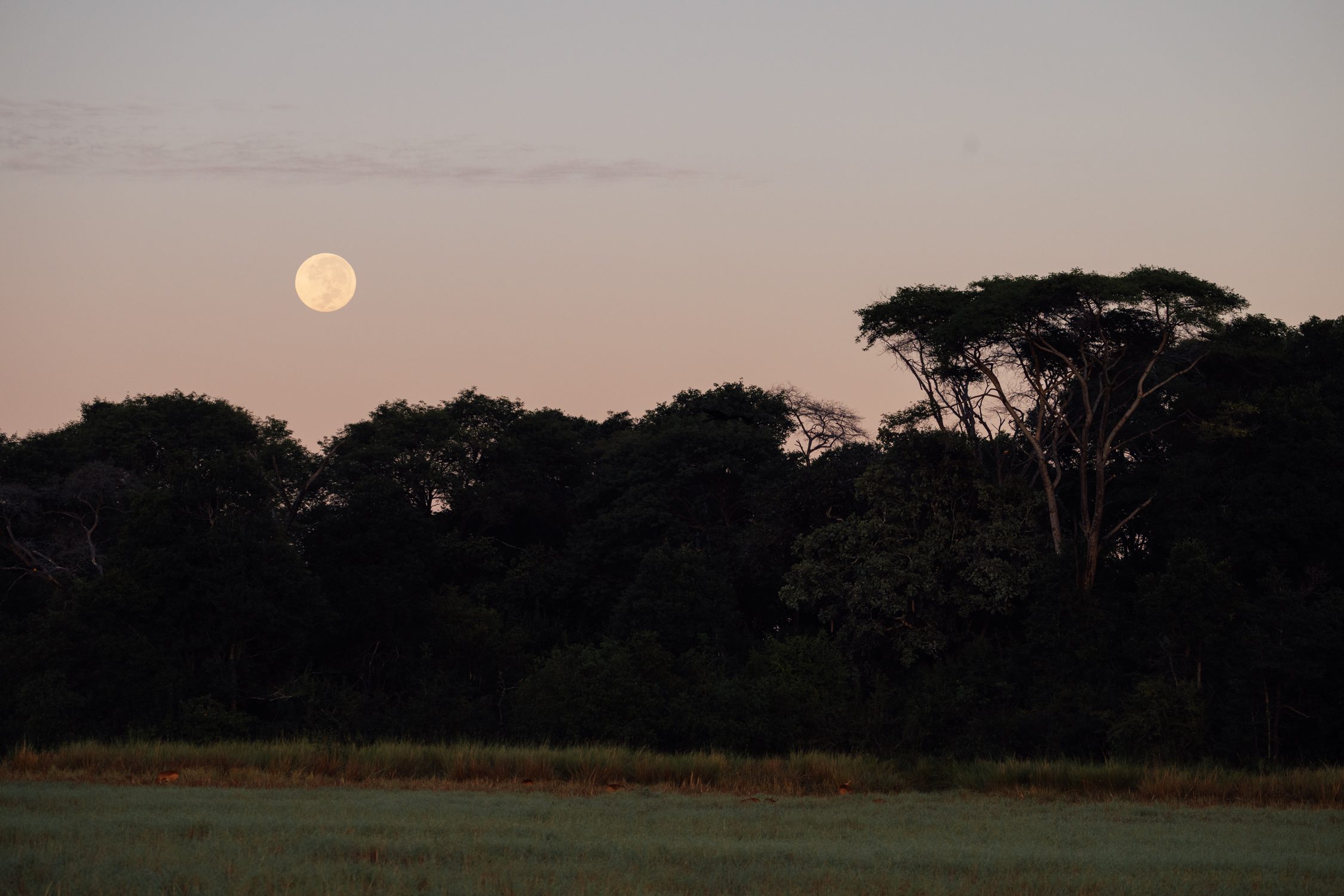 A full moon rose during our sundowners, and later during the night drive we saw Kinky Tail again, followed by the same two SCZ pride lionesses we had encountered earlier. But now they were hunting – directly behind Musekese camp!