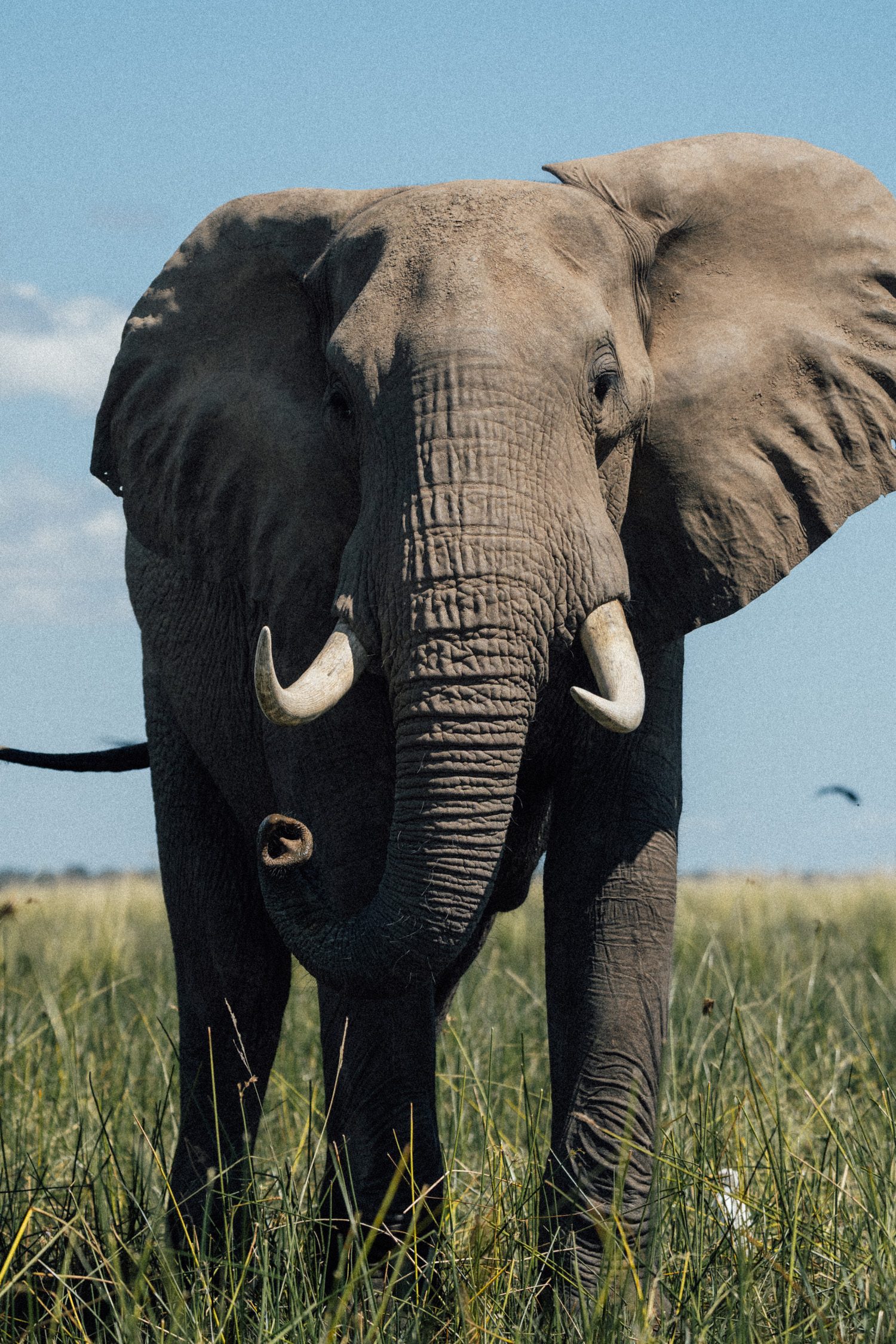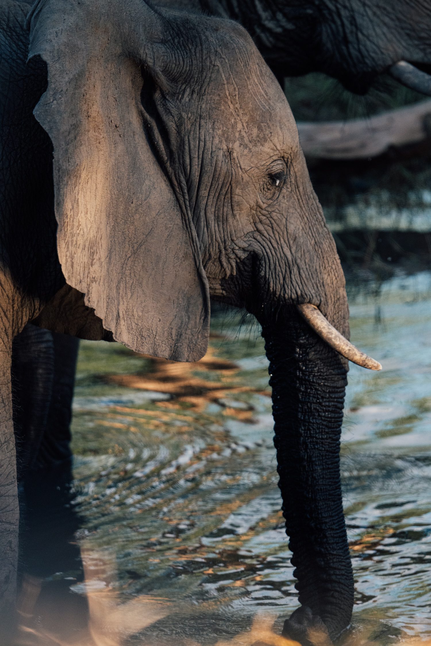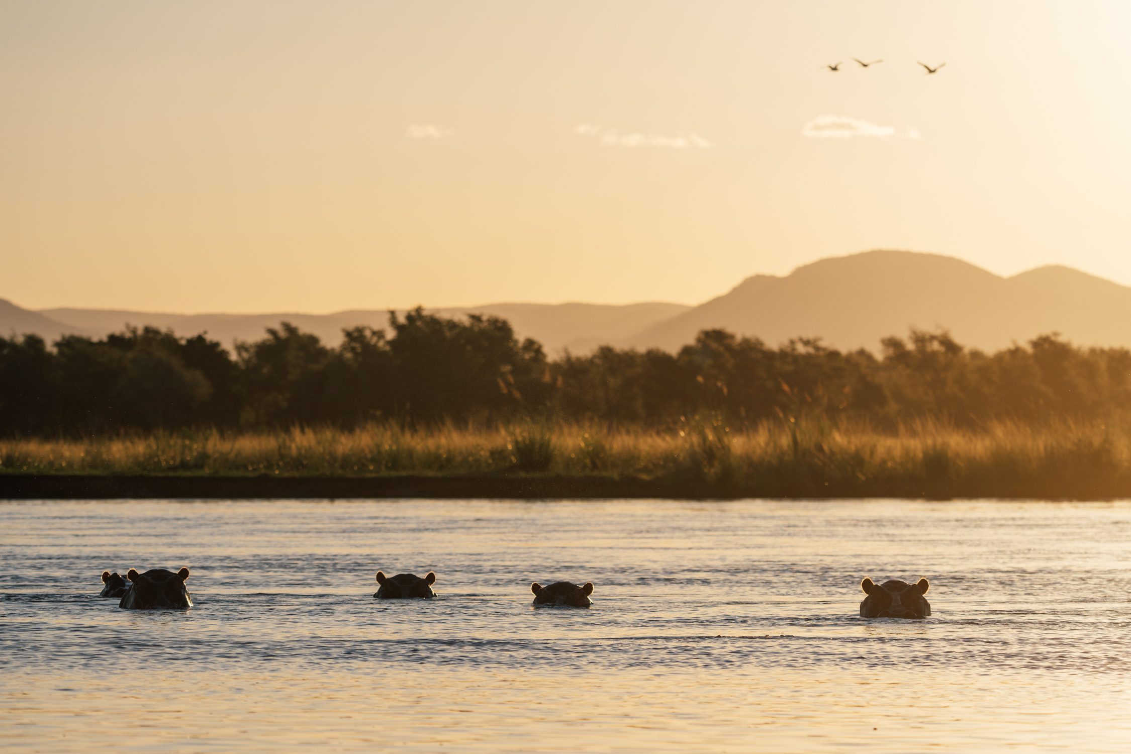 We decided to take the opportunity and do the transfer by boat instead of by car. This gave us an extra activity in the late morning hours. When coming close to Chula Camp we already spotted elephants at the shoreline of one of the islands in the river. We approached carefully and couldn’t believe how close we could get to the three large elephant bulls, without them even lifting a brow. Quite the opposite – they actually decided to head into the water and play in the river right in front of us. It looked like they were practicing mating rituals with each other that day and we enjoyed this sighting to the fullest.