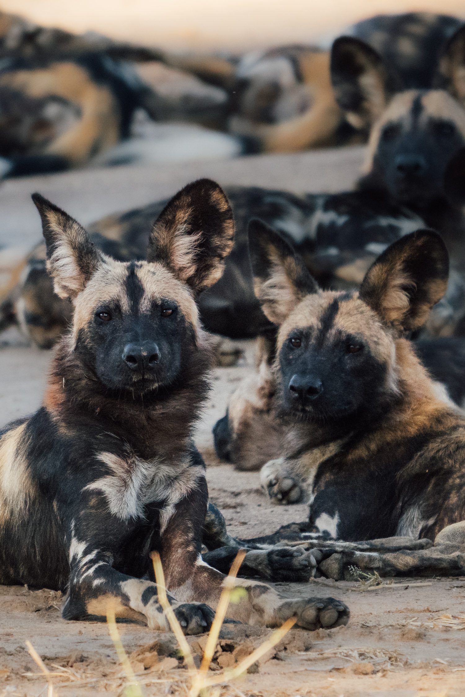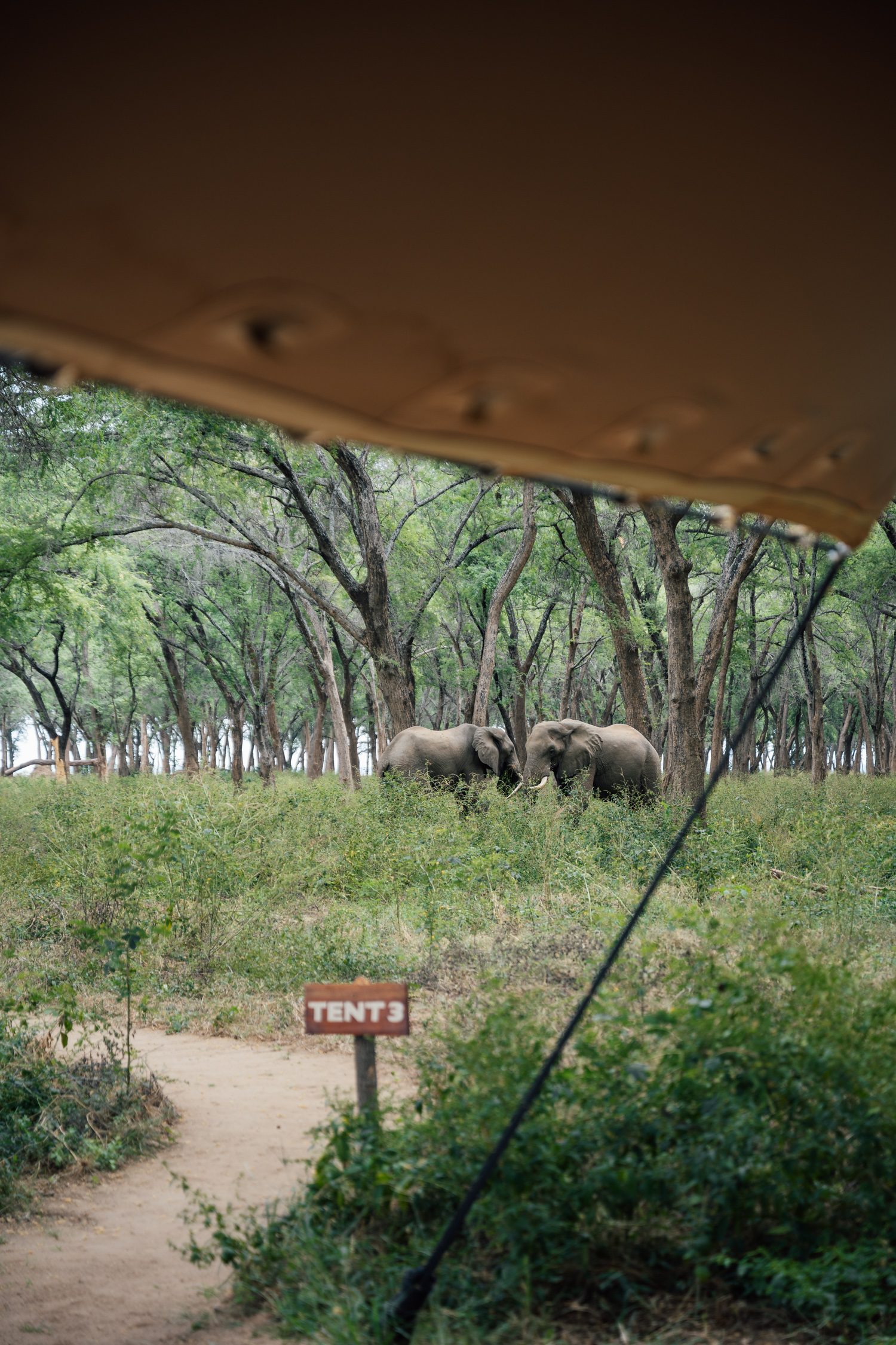After two hours on our private charter plane we arrived at Jeki Plain where we were picked up and transferred to Kutali Camp. The landscape changed dramatically from Kafue, with zebras, elephants, and waterbuck greeting us on the way in. And then to our surprise we even saw the famous pack of wild dogs straight on our transfer drive to camp! What a way to start our time in the park.